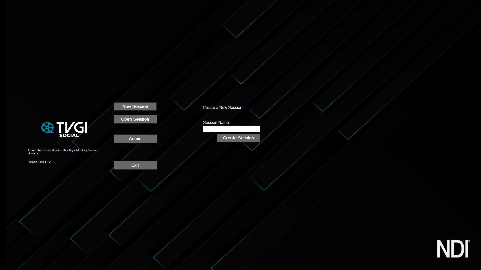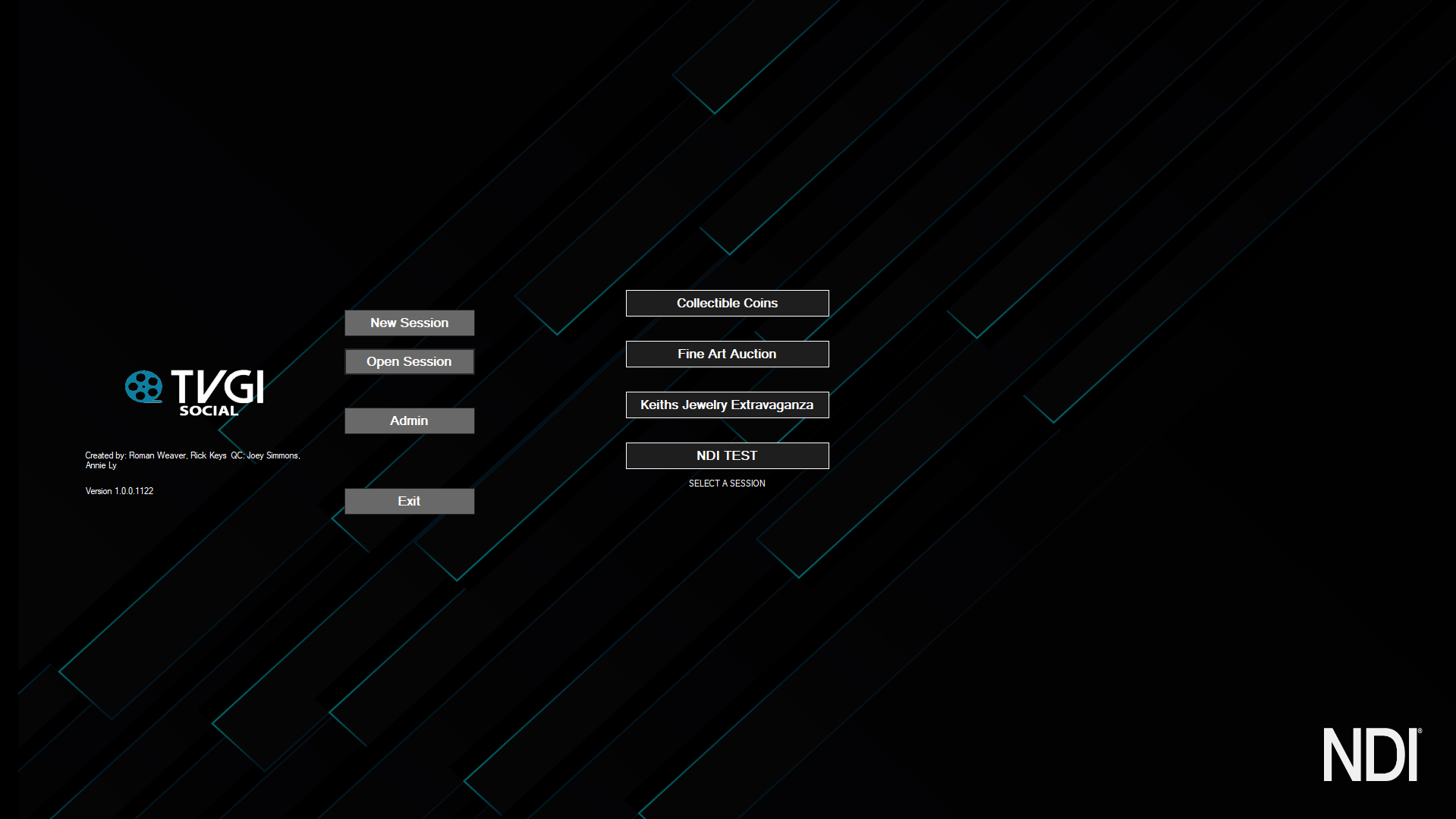 Explore the features of TVGI-Social with screenshots from the admin and session management.